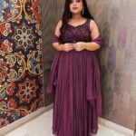 Monotone hand embroidered rushing floor length with dupatta